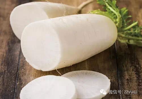白萝卜:白萝卜能消食化痰、下气宽中,可用来缓解过食肉食后导致的反胃、泛酸、恶心、呕吐等症。进食烧烤、火锅、油炸肉食后,若感到腹部不适、口干咽燥,可把白萝卜捣碎后加冰糖少许,微煮后食用。对于因进餐过多导致的睡卧不安,可将生萝卜捣汁内服。白萝卜的辛辣味是因其含有芥子油,有促进消化液分泌的作用,可增加食欲。萝卜中含有大量的膳食纤维,可促进胃肠蠕动、通利大便,弥补了肉食缺乏纤维素的缺陷。