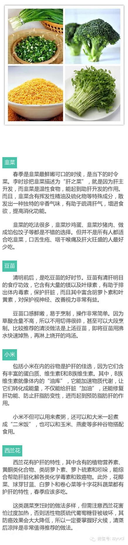 春回大地,阳气升发,蛰伏一冬的身体开始跃跃欲试。中医认为肝属木,肝气的升发如同春季开始发芽、伸展、向上的树木,因此,春季养生重在养肝。韭菜、豆苗、小米、西兰花这四种食物护肝功效突出,最适合在春天吃。