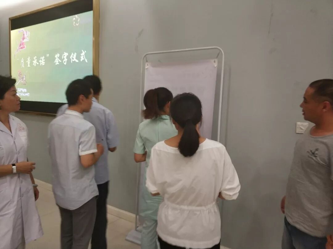 伴随着艾院长的分享的结束,大会也进行到了最后一段落,针对这次会议主旨:“质控”,中心也发起了“质量承诺”签字仪式!中心各部门主任、主管纷纷上到台前签字承诺确认。